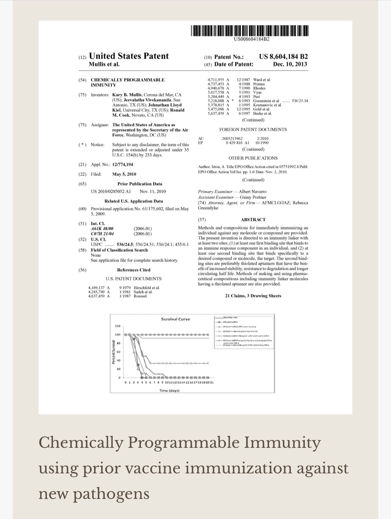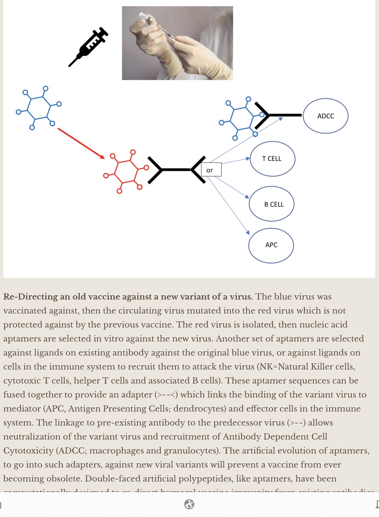 I am a former colleague and co-inventor with the late Dr Kary Mullis, the inventor of the aptamer technology you are developing. I have attached a link to a patent to prove it. I am compelled to write to emphatically urge you to pursue the technology to enhance vaccine development against SARS-CoV2, COVID19, using the aptamer linking technology. Just before the COVID19 outbreak, I sent a pre-proposal letter to CEPI https://cepi.net/ but they turned it down for a full proposal. I believed that was because I was focusing on neglected parasitic tropical diseases and did not represent an established biotech company or institution. I have no monetary interest in your taking up a new proposal at CEPI for COVID19, only a humanitarian one that honors the memory of Dr Mullis. I have confidence this approach will work if given a chance and will significantly shorten the wait for a traditional vaccine which will take 12-18 or more months or the use of antiserum. I have attached a link to the patent I am on with Dr Mullis and the pre-proposal.