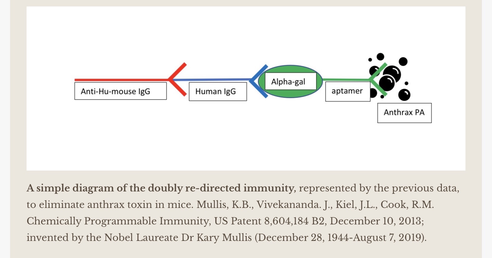 In short, here was the proposal, another chance for a versatile, rapidly responding technology against emerging parasitic and infectious disease killed before it was given a chance, so much for supporting innovation: “This One Health proposal is based on an invention by the Nobel Laureate Dr Kary Mullis (December 28, 1944-August 7, 2019). The platform has been described in detail in enabling US and international patents and peer reviewed scientific papers. The technology is presented in two complementary parts: (1) the nucleic acid aptamer with a chemical linker to recruit an existing immune response to a different natural agent or previous vaccine attached to an aptamer which links the sequences selected for binding in the lab to the target pathogen or parasite; and (2) a synthetic nanoparticle/nanofiber vector to carry the aptamers into the patient and target tissues by a convenient port of entry, releasing them at the site of infection or infestation. Also, a selection process and ruggedized prototype device for use under field conditions to collect target pathogens and isolate an appropriate binding aptamer for amplification and therapeutic use, which has been designed and undergone preliminary tests. A nanosprayer for topical and respiratory/mucous membrane delivery has also been developed; however, several types of nanospray delivery systems are now commercially available (for cosmetics). The same aptamers and vectors designed for therapeutics have been initially designed for diagnostics using fluorescence dequenching, thermochemiluminescence, magnetic capture, electron microscopy contrast media, and visible light microscopy staining and marking and diagnostically demonstrated against spotted fever type rickettsia, Bacillus anthracis (anthrax), botulinum toxin, Francisella tularensis (tularemia; in the field to confirm collection and isolation), and Shiga toxin (E. coli O157:H7, hemolytic uremic syndrome). Furthermore, the synthetic vectors have been made which transfer therapeutic or vaccine DNA to bacterial, animal and human cells, traceable by PCR, gene expression, fluorescence, and staining. The bacterial hosts have shown not only genetic transfer, but also subsequent production of transferable DNA and RNA in biosynthesized vector and subsequent transfer of the genetic material to naïve bacteria and further transfer in the same way for three more times. This biosynthetic form was also transferable to human and animal cells and detected by PCR. The transfer polymer (vector) made synthetically or biosynthetically, when activated, absorbs a wide range of electromagnetic radiation from UV to visible light to microwave and radiofrequency radiation. The polymer protects the DNA from nucleases and radiation damage until saturated (high energy pulsed radiation) then can cut or destructively damage DNA or RNA by free radical generation. The microwave killing mechanism has been demonstrated against anthrax and other bacilli spores. A series of pictures showing the platform tracking and transferring infection of spotted fever-like rickettsia to target cells, and the biosynthetic composite platform transferring genes to target bacteria and human and animal cells in culture were presented as well as the nanospray delivery device.”